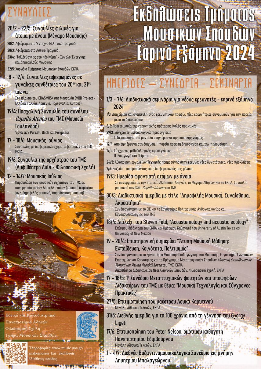 ΕΚΔΗΛΩΣΕΙΣ ΤΟΥ ΤΜΗΜΑΤΟΣ ΜΟΥΣΙΚΩΝ ΣΠΟΥΔΩΝ - ΕΑΡΙΝΟ ΕΞΑΜΗΝΟ 2024